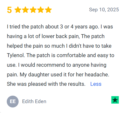 Some users are able to eliminate their pain entirely. This can be due to a few factors like good patch placement or low severity of the underlying issue causing the pain. Some users are only able to eliminate a fraction of their pain. If you have used the patch to help eliminate some of your pain but would like to see if it can do better, continue experimenting with patch placement or add additional patches.